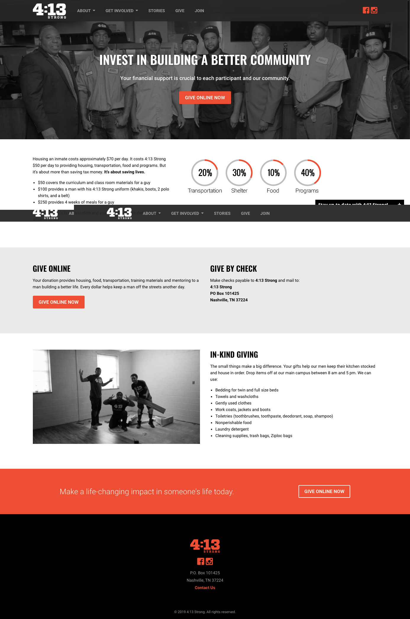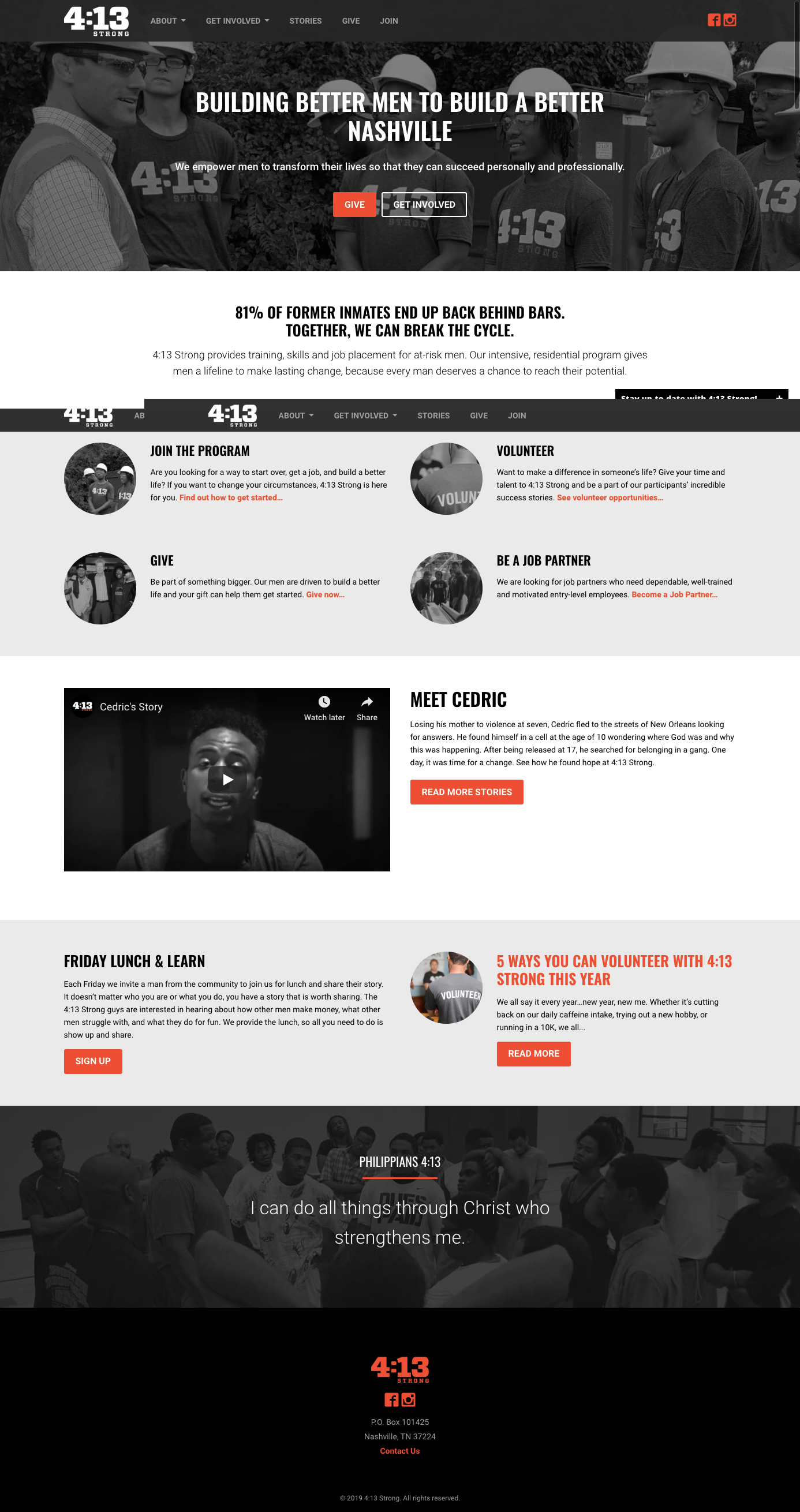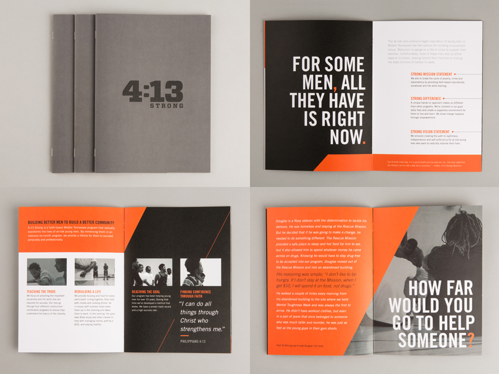 4:13 Strong was formerly Y-build, until the YMCA had to cut their funding. To keep them afloat, we rebranded the organization from top to bottom.
