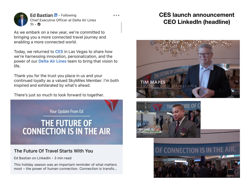 These videos play on all seat-back screens as the plane pushes back from the gate. They’re voiced by CEO Ed Bastian and air on Delta aircraft globally.