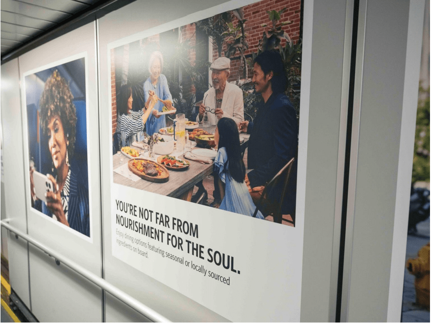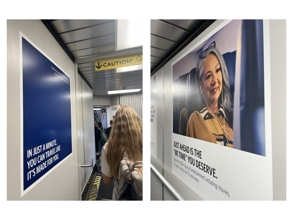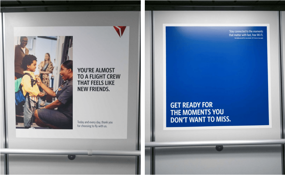 The copy was featured in all creative, including the c-suite social media, in airport terminals, on board the aircraft and on billboards in hubs like LA, Seattle, Atlanta and NYC.