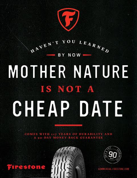 Our instructions in the creative brief were simple: Firestone wanted to grab a share of consumers from the lower-tier tire market.