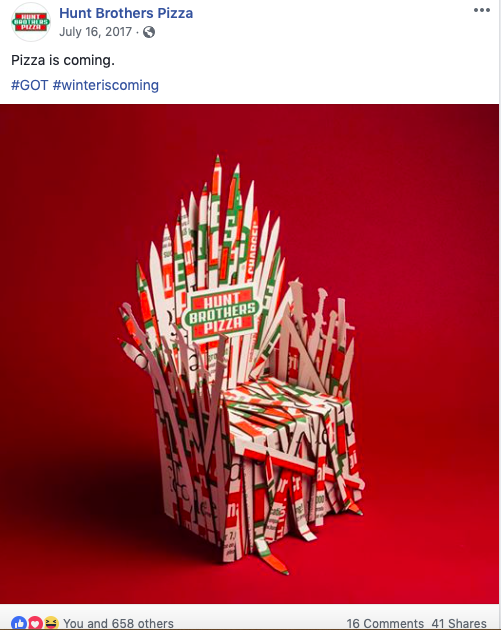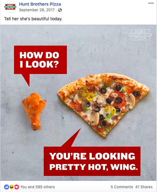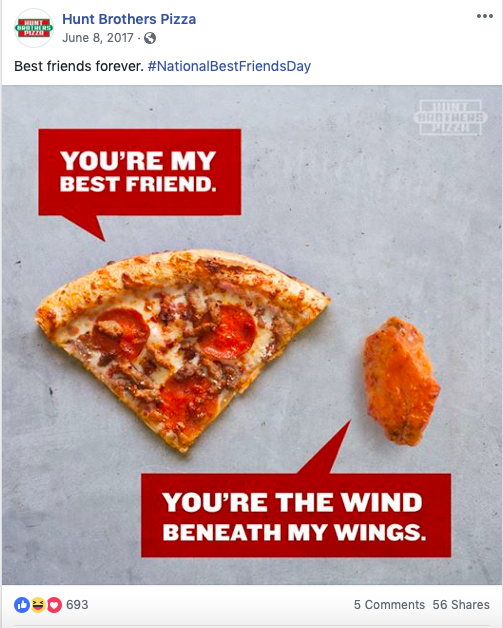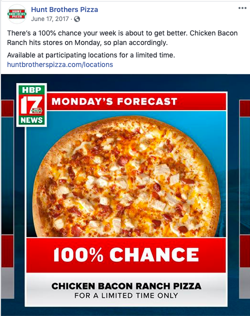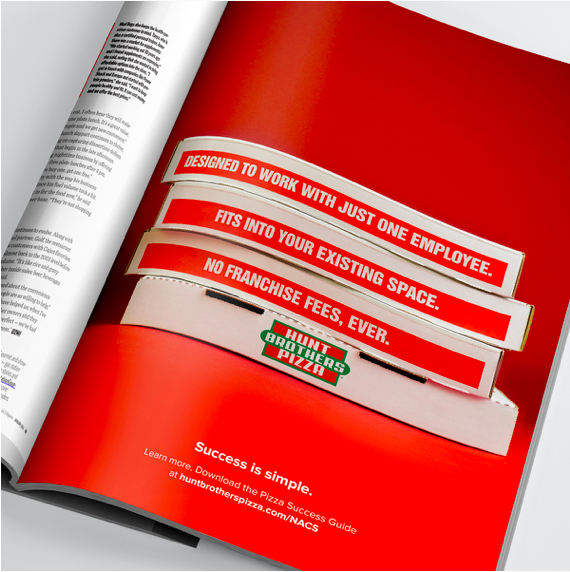 Hunt Brothers Pizza provided a lot of writing opportunities over the years, from social to brand voice development to in-store PoP and traditional advertising. They have over 7,500 locations across the country with B2C (consumers who eat the pizza) and B2B (franchisees who sell the pizza) audiences.